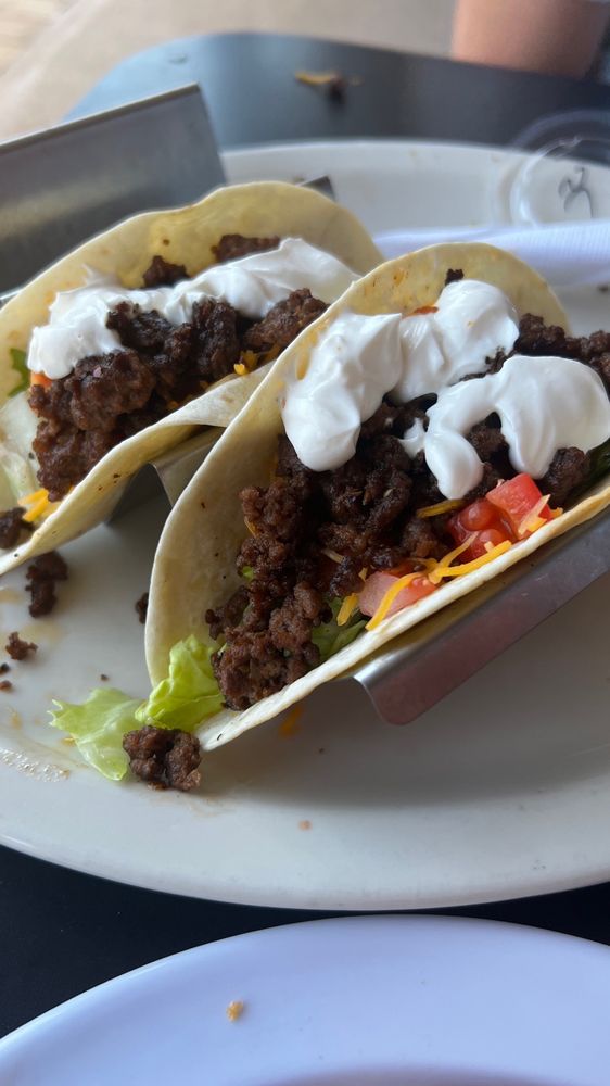 3 tacos served with beef or chicken, lettuce, tomatoes, shredded cheddar cheese, & house sauce.